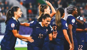 UEFA Women’s EURO: France Advances to Euro 2025 Quarterfinals with 4-1 Victory Over Wales Updated Jul. 9, 2025, 6:54 p.m. ET France is on track for the Women’s European Championship quarterfinals following a commanding 4-1 victory over Wales on Wednesday. Clara Mateo shone in the match, contributing to three of the goals. The Paris FC